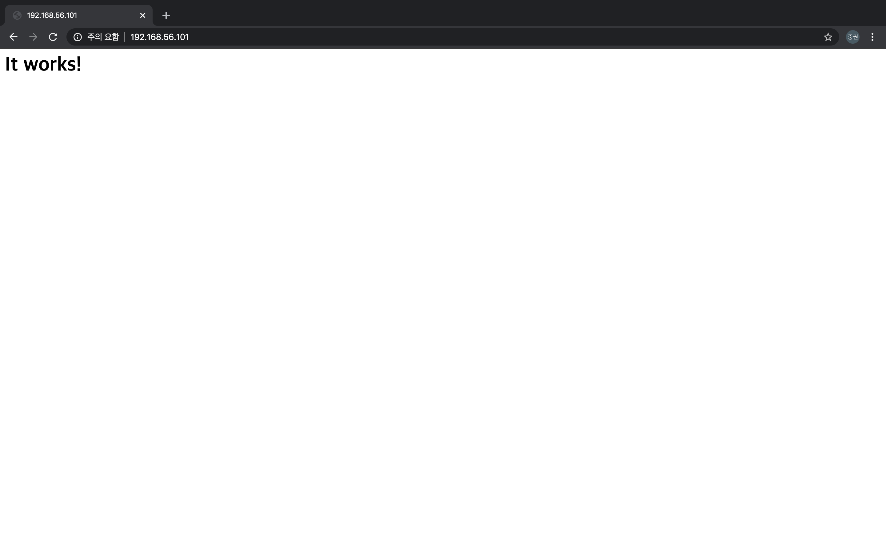 - It works! 라는 페이지가 나오면 정상적으로 설치가 된 상태