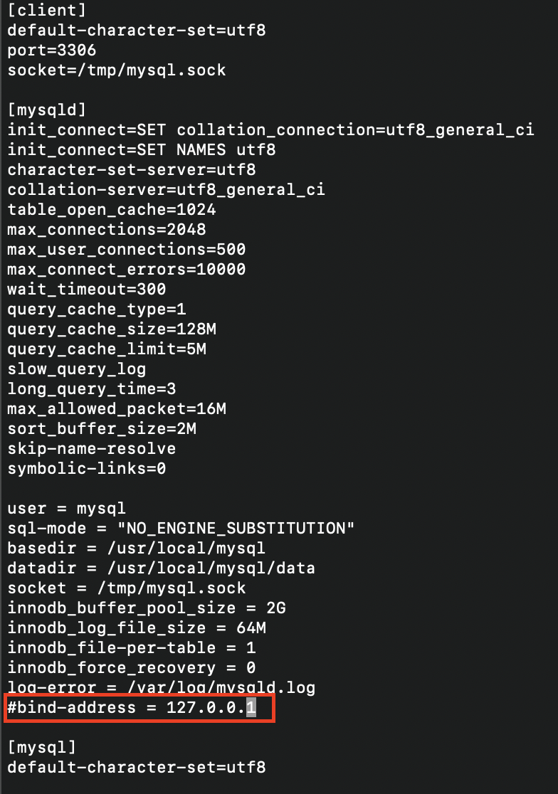 * bind-address : MySQL에 허용할 IP 접속을 설정