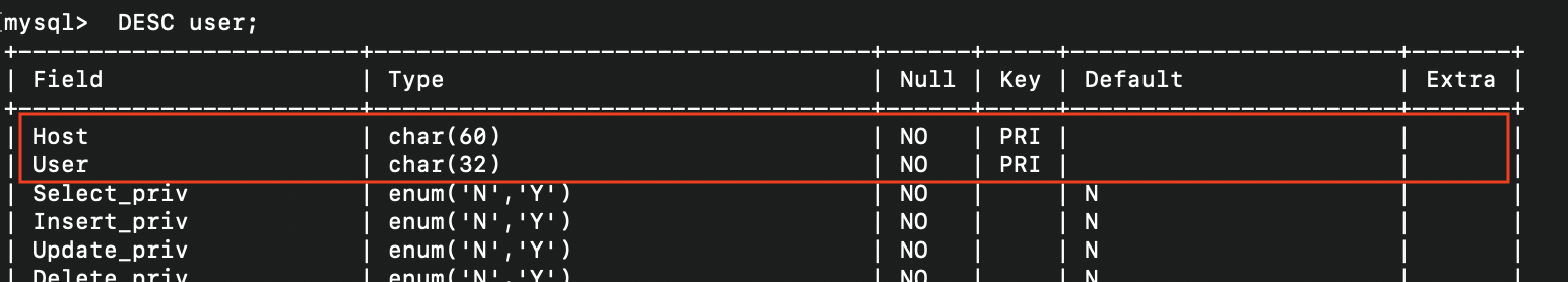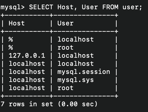* 사용한 명령어 : SELECT Host, User, FROM user;