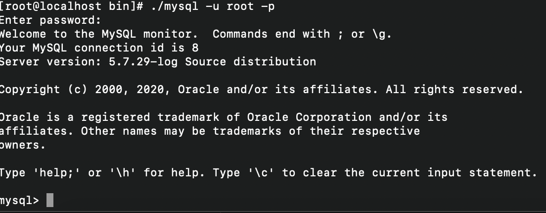 * 설치된 경로로 명령어 : cd /usr/local/mysql/bin