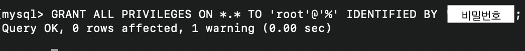 * 사용한 명령어 : GRANT ALL PRIVILEGES on *.* TO 'root'@'%' IDENTIFIED BY 'root사용자 패스워드';