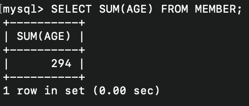 - 사용한 명령어 : SELECT SUM(AGE) FROM MEMBER;