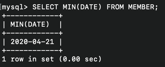- 사용한 명령어 : SELECT MIN(DATE) FROM MEMBER;