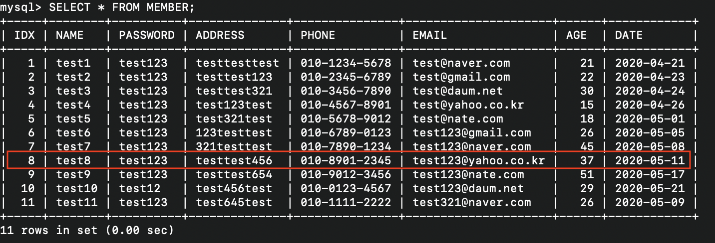 * 사용한 명령어 : SELECT * FROM MEMBER;