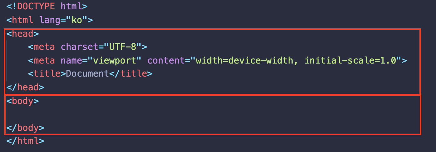 - 가장 큰 <html> 태그 안에 <head>, <body> 태그가 위치해 있음