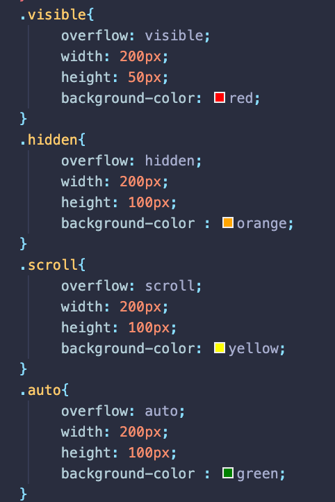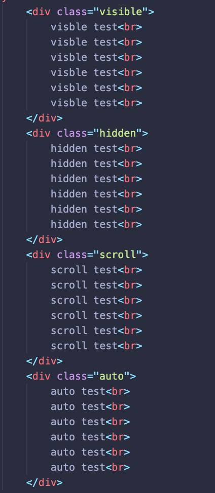 - auto : 지정된 요소를 벗어나면 스크롤이 나오고 넘지 않으면 스크롤이 출력이 되지 않음