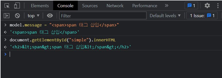 * v-html 단점 : XSS(Cross Site Scripting) 공격 등에 취약함